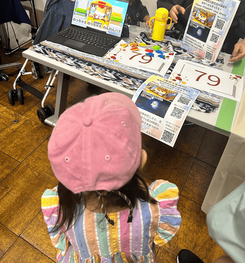 展示内容は、お子さんに聞かせる曲がマンネリしてきたから、じゃあ生成AIを使って、子どもがハマってくれるような『新しい童謡』を作ってみよう ということで、ChatGPT・Snow AI・Bing Image Creator・Geminiなどを使って童謡を作成したもの。