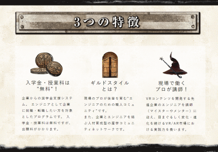 1.入学金、授業料は“無料”。企業スポンサーからの奨学金システム。