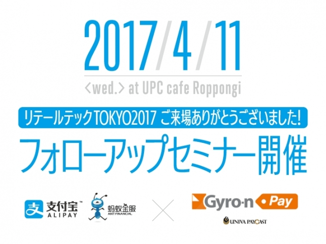 小規模店舗でも手軽にAlipay決済を導入できるアプリ「招待ペイ」、及び、Alipay・クレジット決済をオンラインでも店頭でも使える新しい総合決済ソリューション「Gyro-n Pay(ジャイロン・ペイ)」を、リテールテックTOKYO 2017(3月7〜10日)にて紹介しきれなかった、「中国インバウンド顧客向けの売上を上げるために決済サービスでできる施策」をテーマにしたフォローアップセミナーを開催します。
