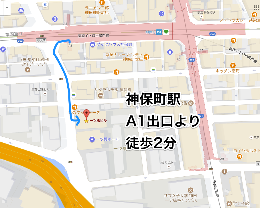 - 半蔵門線・都営三田線・都営新宿線「神保町駅」より徒歩2分