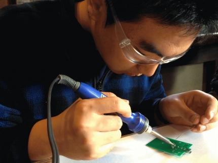 この講座では、のるLABで開発された非接触給電実験キットを用いて、簡単なアナログ回路とコイルを使って非接触でLEDを点灯する非接触給電回路を作成していきます。はんだづけのイロハも学んでいきながら、電磁誘導と共振の原理を使って、受電側のLEDもはんだ付けして作ります。ファブラボ関内のメンバーが作成した「小さいお家」も一緒につくります。最後にお家に仕込んだLEDを非接触で給電して点灯すれば完成です。いろいろなことに応用できるスキル、ぜひこの機会に学んでみませんか。
