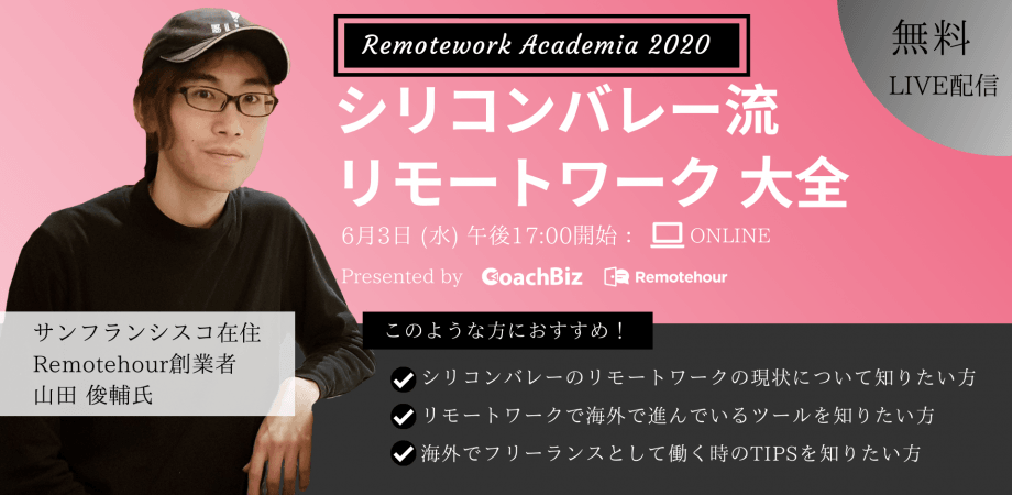 米国では、新型コロナウィルスの感染者数が147万人を超え、死亡者数は9万人に到達する勢いとなっています。元々シリコンバレーでは、米国外の海外のリモートワーカーを登用したり、教育での多様性などからリモートワーク が進んでいた会社も多数存在していました。新型コロナ流行後、サンフランシスコの起業家も既存の事業から転換し、afterコロナを見据えた事業展開が増えています。テックジャイアントのGoogle と Facebook も2020年末まで在宅勤務を継続することを表明しており、日本よりも深刻化している新型コロナの対応が急務となっています。今回は、元Y CombinatorのパートナーであるDaniel Gross氏が代表のフルリモートのアクセラレーター『Pioneer』にも選出されたシリコンバレー在住の山田俊輔様をお招きし、シリコンバレーでのリモートワーク について、リモートワークで海外で進んでいるツール、海外でフリーランスとしてリモートワーク で働く時のTIPS、シリコンバレーのリモートアクセラレーターなどについてお聞きいたします!