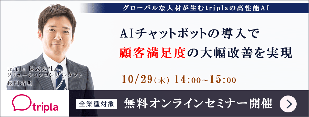 参加無料】AIチャットボットの導入で顧客満足度の大幅改善を実現 - tripla オンラインセミナー