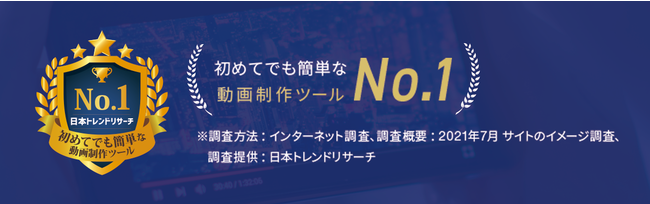 「初めてでも簡単な動画制作ツール」としてNo.1(※1)に選ばれました。