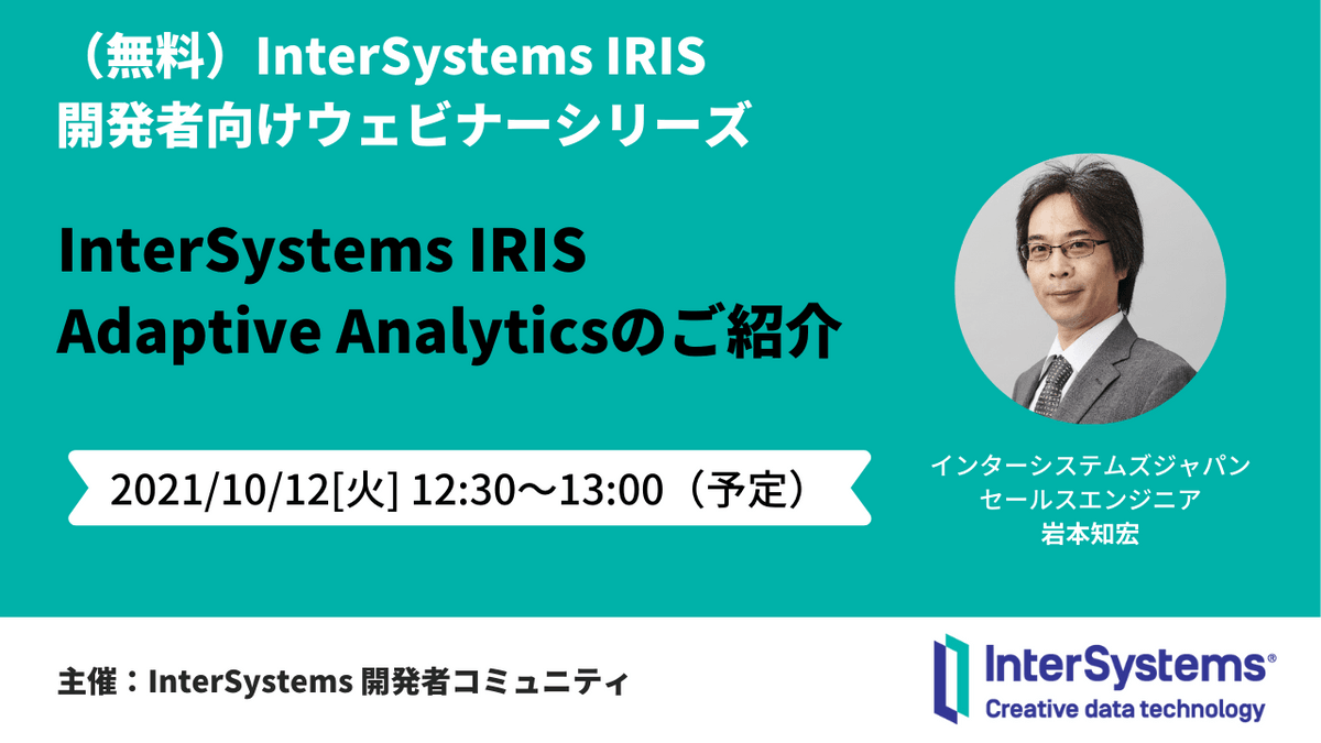 | 12:35~13:10 | InterSystms IRIS Adaptive Analytics のご紹介 |