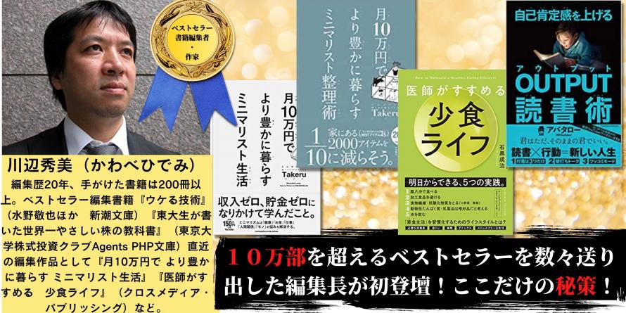 今回は、編集者として20年の実績があり、通算200冊以上の書籍編集に携わった編集長・川辺による **「読まれる書籍の作り方」**を2回のセミナーに分けてご紹介します。