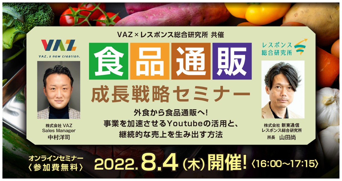 通販に参入したい企業様、参入したけど思うようにうまく行っていない企業様向けに「外食から食品通販へ!事業を加速させるYouTubeの活用と、継続的な売上を生み出す方法」と題し、2022年最新施策事例をご紹介するセミナーを開催いたします。