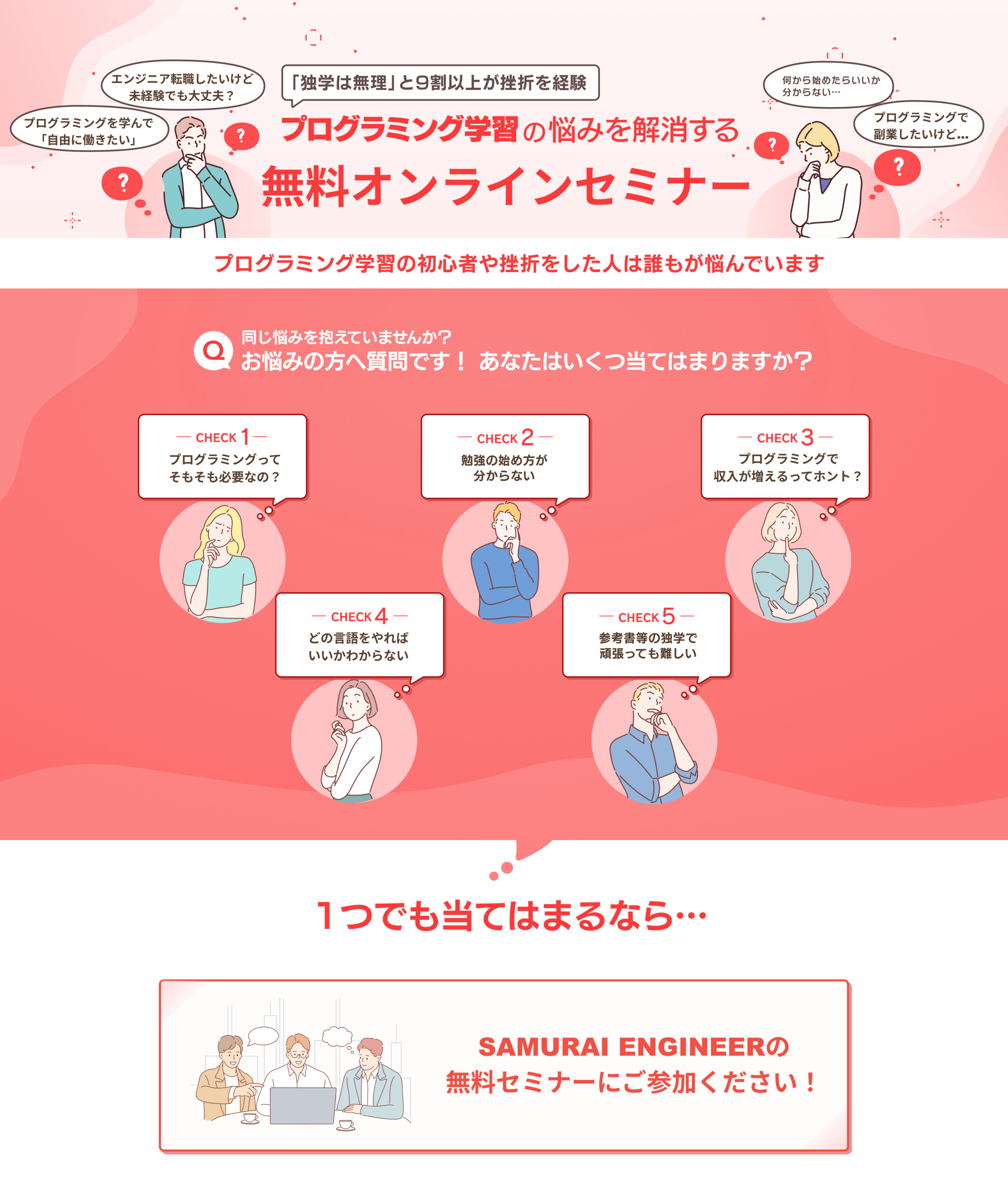 参加いただくと、SAMURAI ENGINEER入学時の受講料金が10,000円OFFになります。