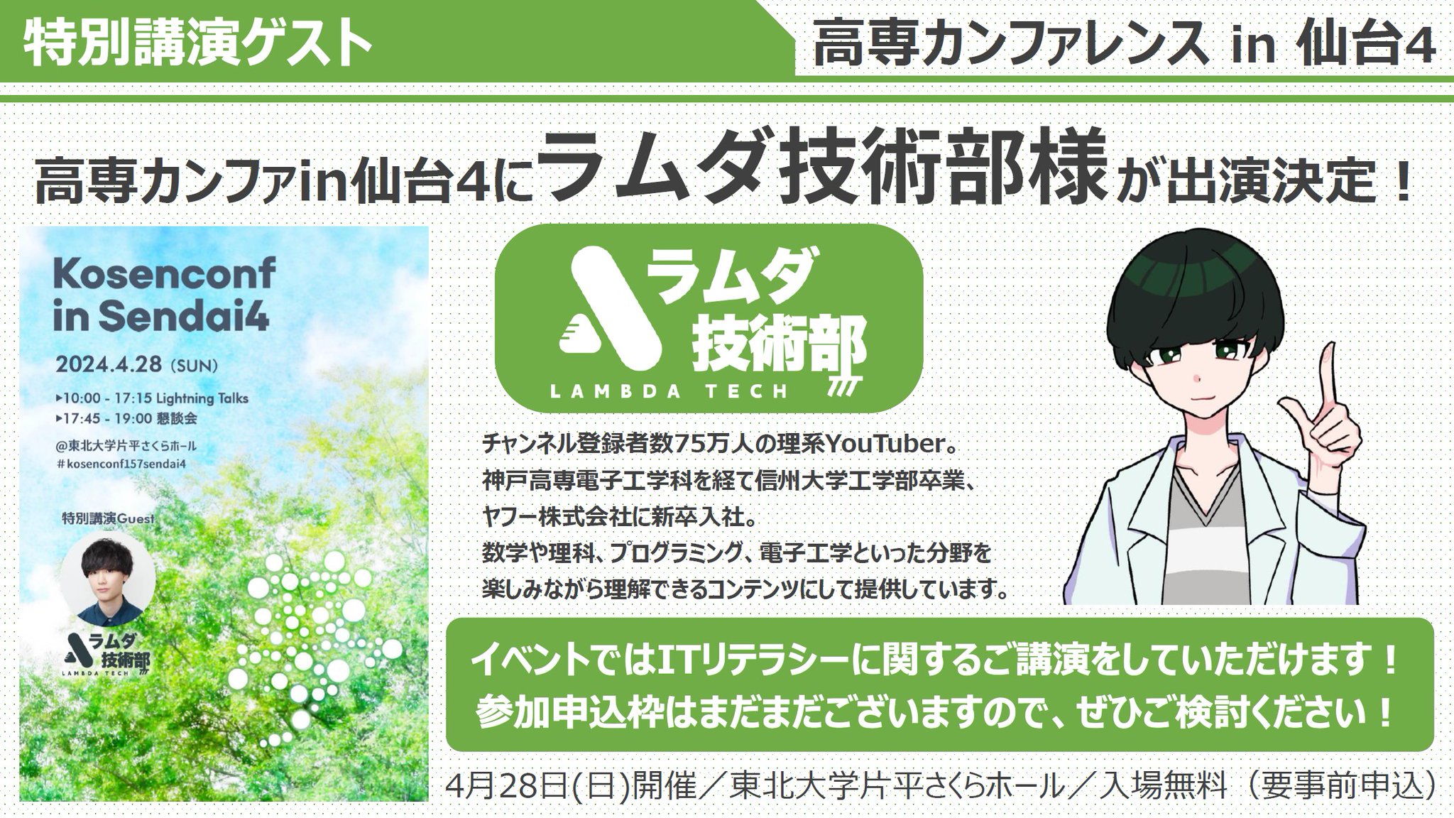 - 特別講演 特別講演ゲストとしてラムダ技術部様が出演されます。