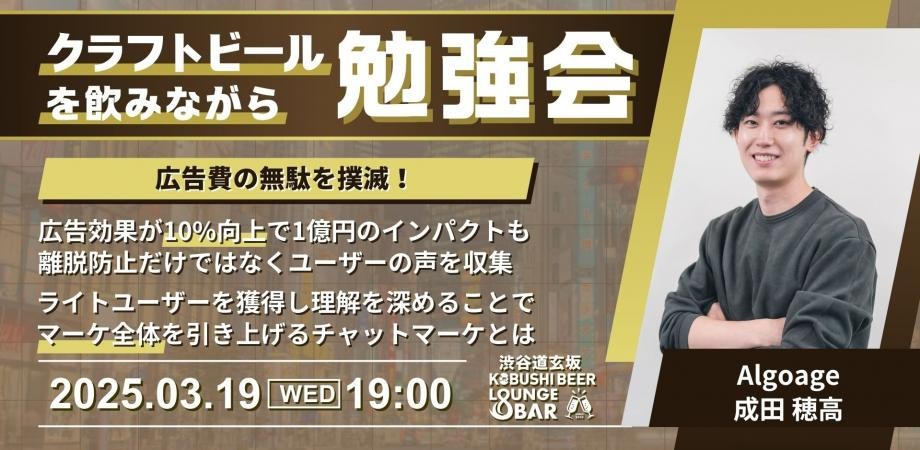 【3月19日(水)19:00~】広告効果が10%向上で1億円のインパクトも離脱防止だけではなくユーザーの声を収集。ライトユーザーを獲得し理解を深めることでマーケ全体を引き上げるチャットマーケとは / ゲスト:Algoage 成田穂高