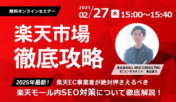 本セミナーでは、楽天ショップへのサイト流入を増やすための実践的で最新の楽天モール内SEO対策ついて徹底解説します!