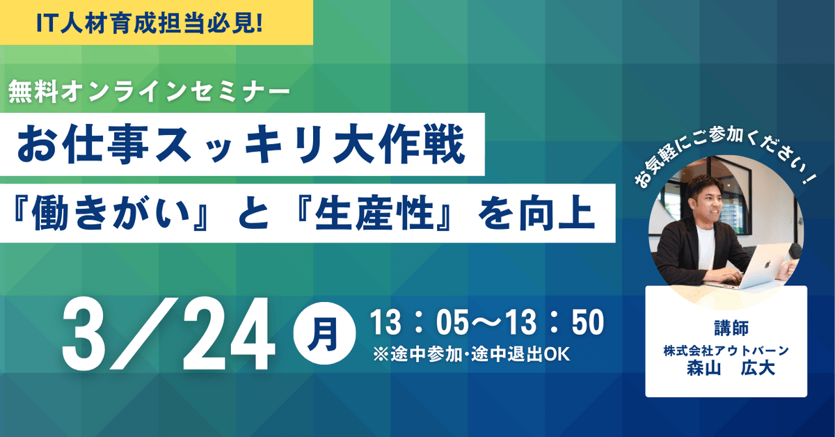 【3月24日(月)開催】お仕事スッキリ大作戦 『働きがい』と『生産性』を向上