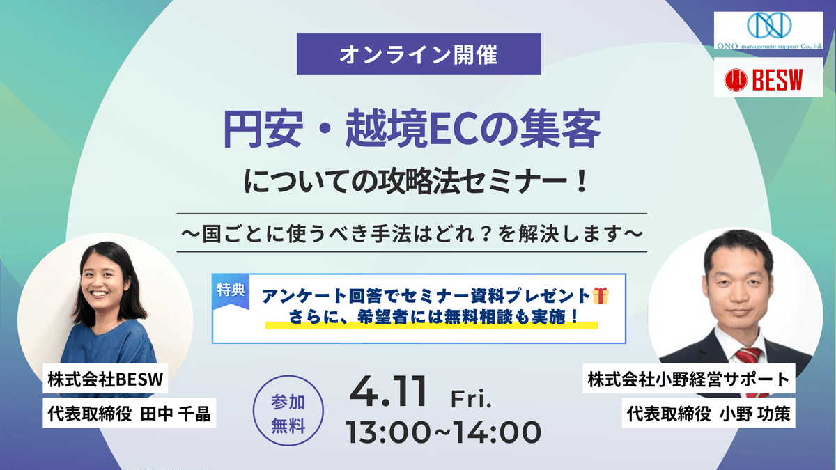 円安・越境ECの集客についての攻略法セミナー! 〜国ごとに使うべき手法はどれ?を解決します〜