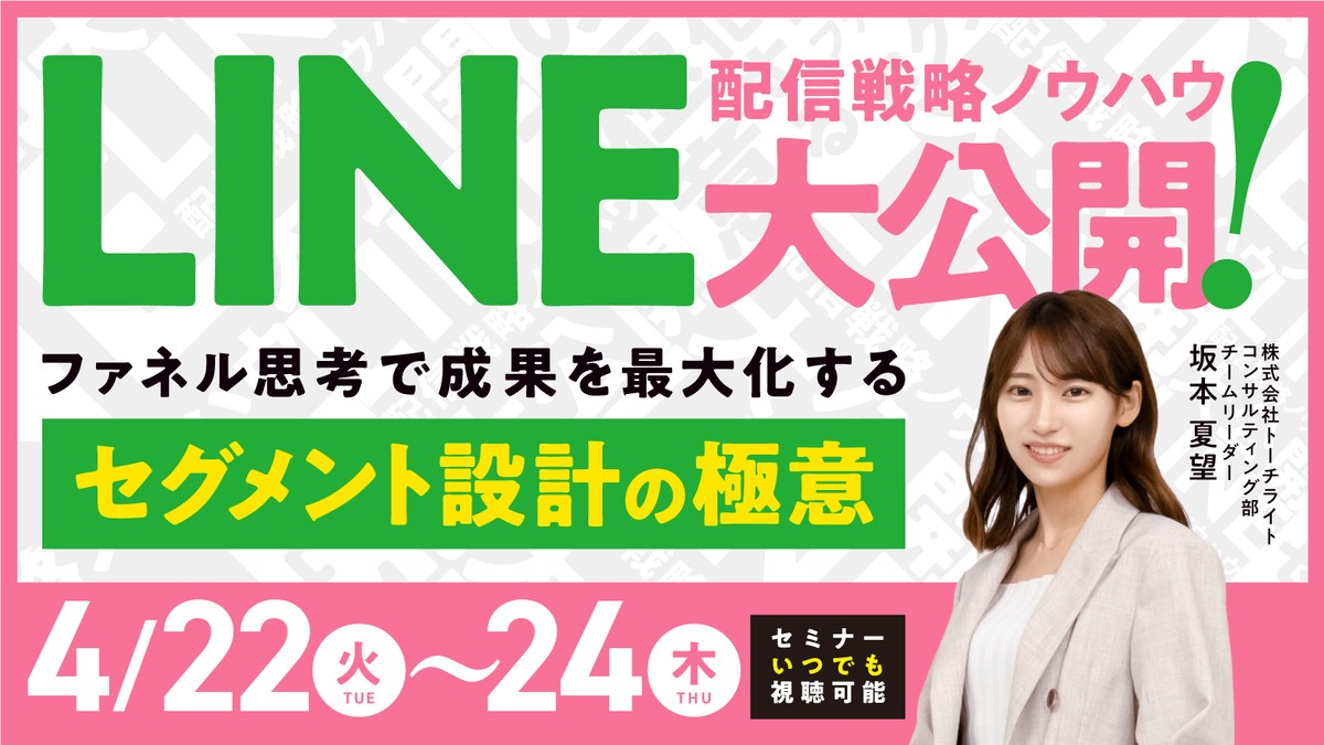 【4/22(火)-24(木)開催】LINE配信戦略ノウハウ大公開! ファネル思考で成果を最大化するセグメント設計の極意