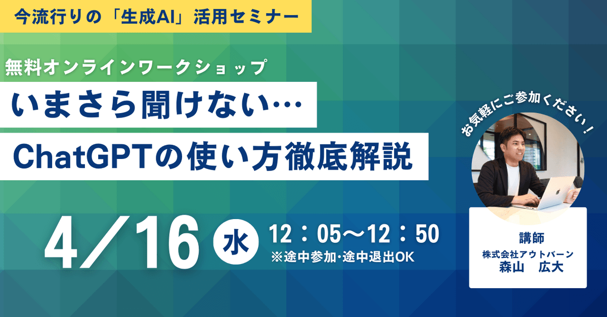 今回は「今さら聞けない、ChatGPTの使い方」をテーマにしたセミナーを開催いたします!