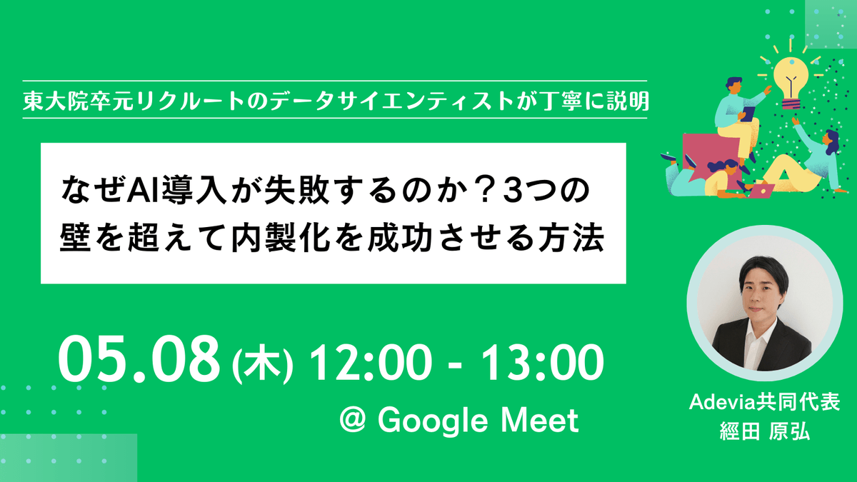 **經田 原弘(株式会社Adevia 共同代表)**東京大学大学院を卒業し、リクルートでの実務経験を持つ代表が講師を担当します。さらに、JAXAとの共同研究の実績もあり、AIツールの開発と企業研修の両方に経験豊富です。