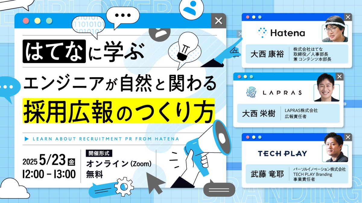 今回は、LAPRAS・はてな・TECHPLAYの3社が一堂に会し、「エンジニア採用×技術広報」のリアルを徹底的に語り合います。