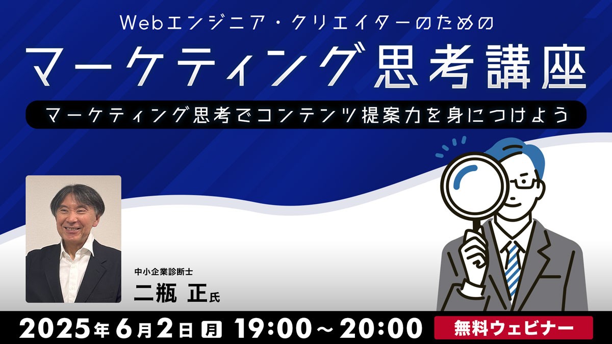 6月2日(月)19:00~ Webエンジニア・クリエイターのためのマーケティング思考講座 ~マーケティング思考でコンテンツ提案力を身につけよう~