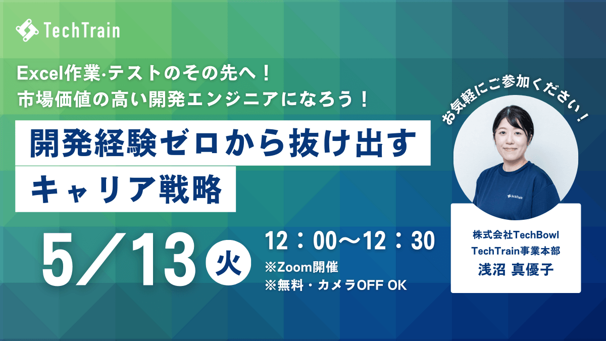 本セミナーでは、実務経験が乏しい方でもこれから市場価値を高めるための具体的な戦略をお伝えします。開発経験ゼロの壁を乗り越え、今後のキャリアを築くために、まず何から始めればよいのか?自己PRのポイントやTechTrainを活用したポートフォリオ作成方法など、実践的な方法も合わせてご紹介します。