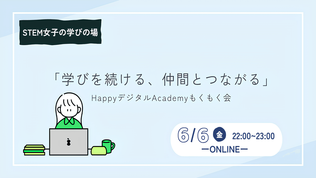 【6/6(金)オンライン開催】第6回 「学びを続ける、仲間とつながる」HappyデジタルAcademyもくもく会
