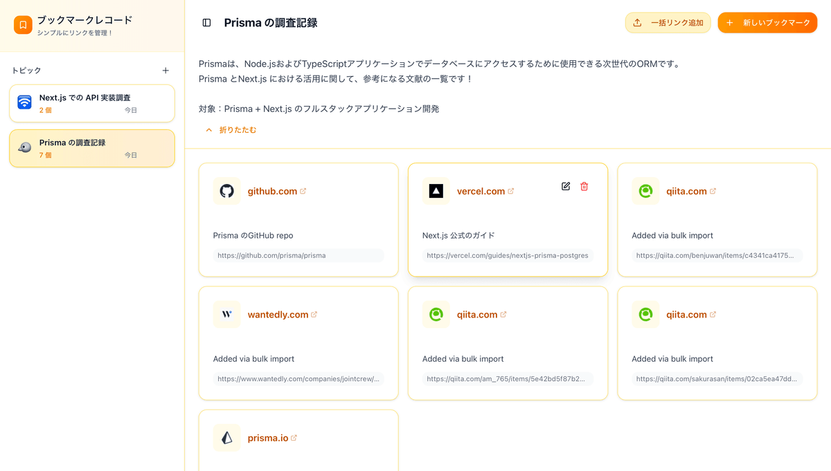 トピックを作成し、そのトピックに関連する URL ブックマークを追加することで、情報を整理して保存・表示します!