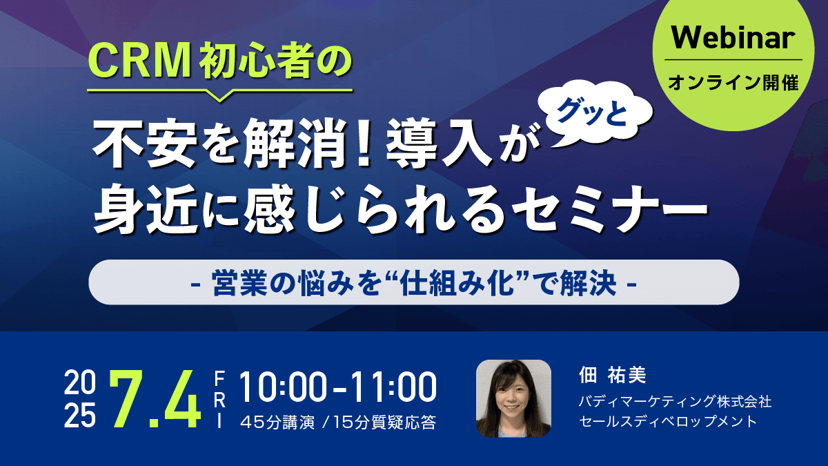 CRM初心者の不安を解消!導入がグッと身近に感じられるセミナー 〜営業の悩みを“仕組み化”で解決〜