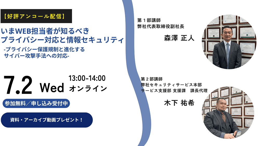 【好評アンコール配信】いまWeb担当者が知るべきプライバシー対応と情報セキュリティ -プライバシー保護規制と進化するサイバー攻撃手法への対応-