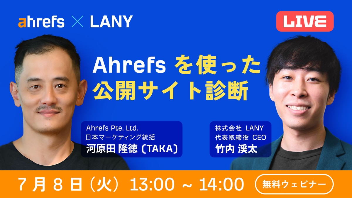 SEO の悩みを解決!✨ Ahrefs 活用法を LANY と学ぶ無料ウェビナー!🔥