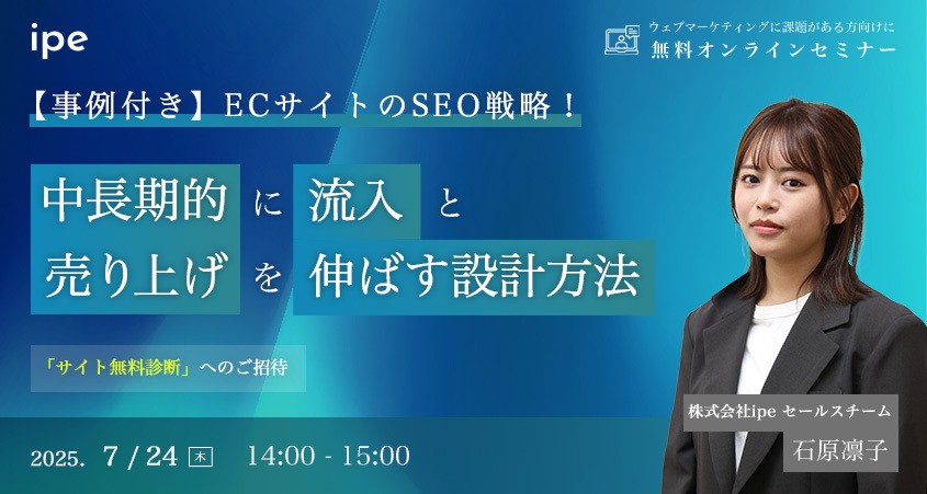 | 14:00~15:00 | SEO戦略とは ECサイトにおけるSEO戦略 ipeが設計したECサイトのSEO戦略 |