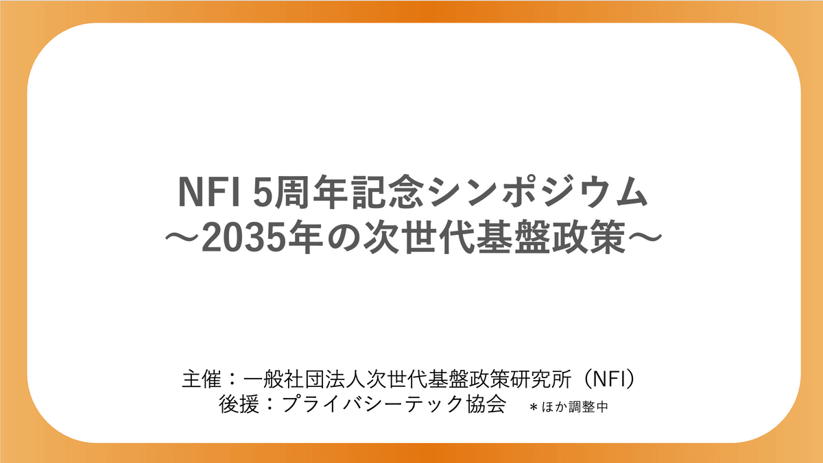 【後援イベント】NFI 5周年記念シンポジウム ~2035年の次世代基盤政策~