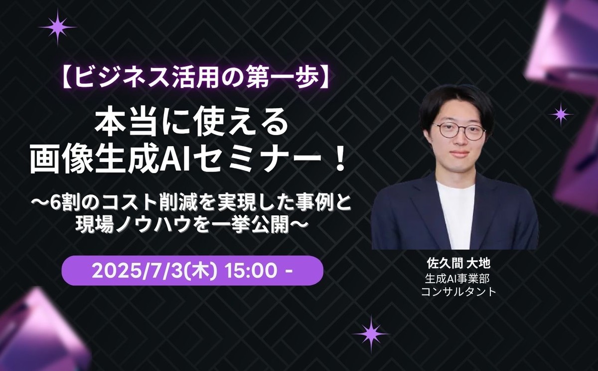 【ビジネス活用の第一歩】本当に使える画像生成AIセミナー!〜6割のコスト削減を実現した事例と現場ノウハウを一挙公開〜