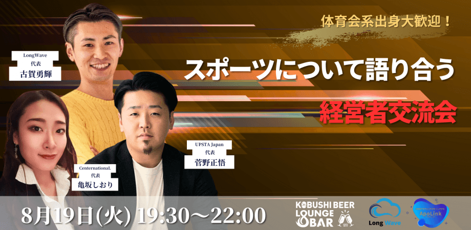 【8月19日(火)19:30~】スポーツについて語り合う経営者交流会-体育会系出身歓迎