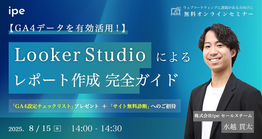 | 14:00~14:30 | ・Looker Studioとは ・Looker StudioとGA4の連携方法 ・Looker Studioでレポートを作成する方法 |