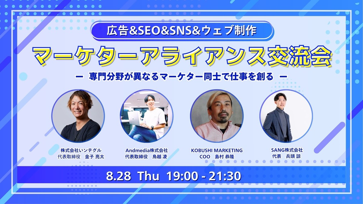 【8月28日(木)19:00~】広告&SEO&SNS&ウェブ制作のアライアンス交流会 ~ 専門分野が異なるマーケター同士で仕事を創る