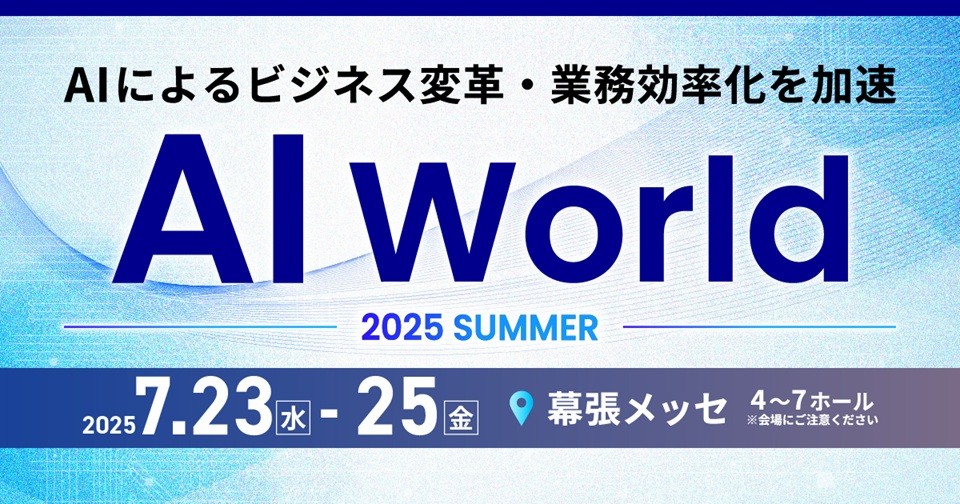 2025年7月23日(水)~25日(金)に開催される「AI World 2025 夏 東京」にて当社社員が展示・講演します。