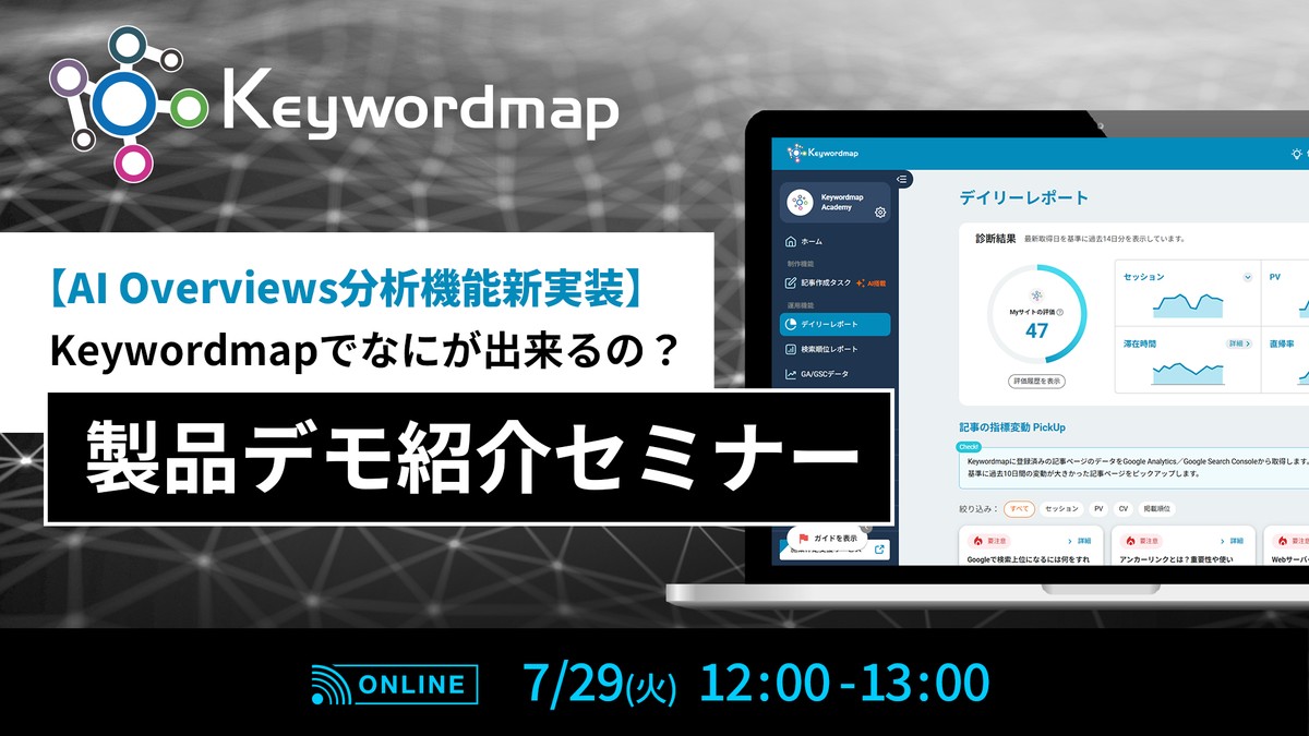 【AI Overviews分析機能新実装】Keywordmapでなにが出来るの?製品デモ紹介セミナー