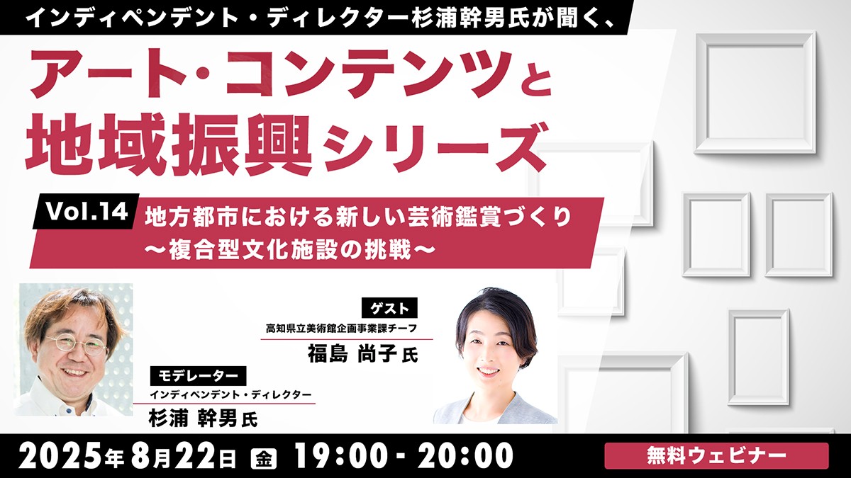 8月22日(金)19:00~ インディペンデント・ディレクター杉浦幹男氏が聞く、アート・コンテンツと地域振興シリーズvol.14 地方都市における新しい芸術鑑賞づくり~複合型文化施設の挑戦~
