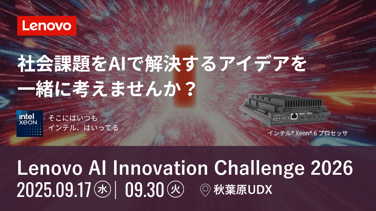【2025年9月17日、30日の2日間開催!】Lenovo AI Innovation Challenge 2026|社会課題をAIで解決するアイデアを一緒に考えませんか?
