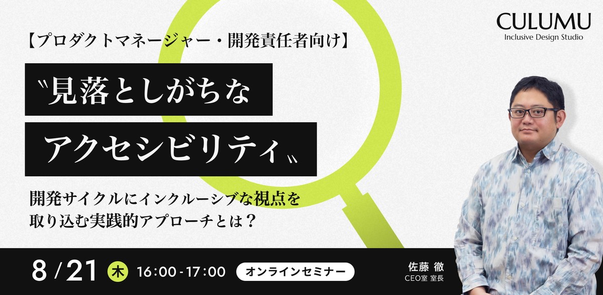 【プロダクトマネージャー・開発責任者向け】〝見落としがちなアクセシビリティ〟開発サイクルにインクルーシブな視点を取り込む実践的アプローチとは?