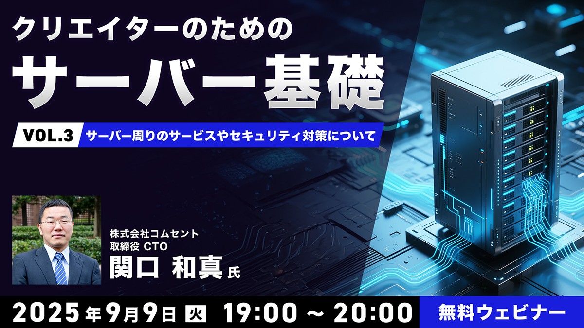 クリーク・アンド・リバー社(C&R社)は、2025年9月9日(火) に、サーバーにあまり詳しくないクリエイターの方を対象にした、「サーバーの基礎知識」に関するウェビナーを実施します。