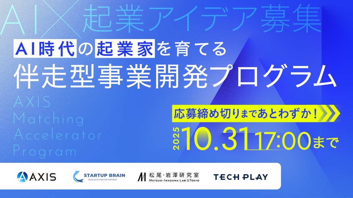 AI時代の起業家を育てる、伴走型事業開発プログラム AXIS Matching Accelerator Program【応募期限10/31(金)まで】