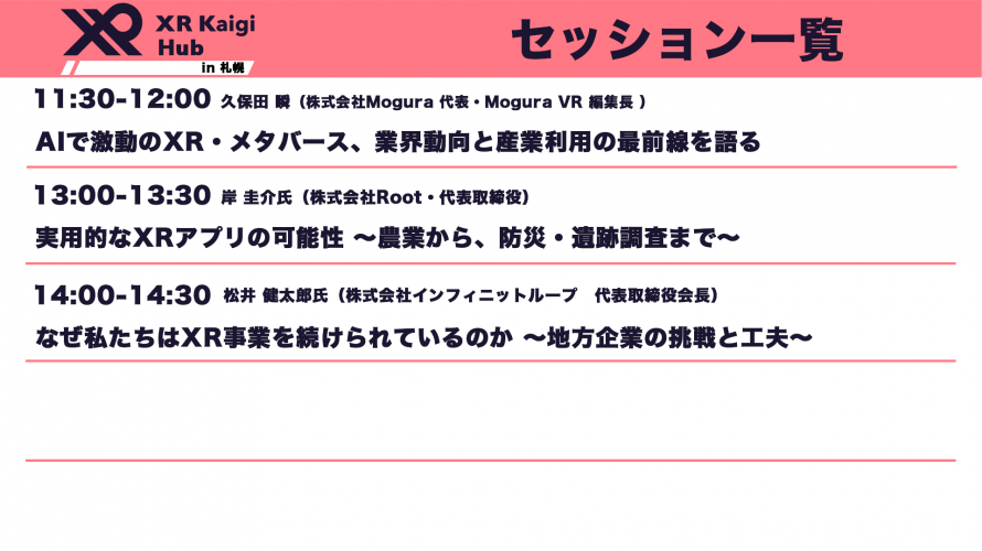 【XR Kaigi Hub 開催一覧】