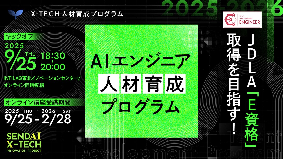 後援:日本ディープラーニング協会、CDLE宮城(JDLA「G検定」「E資格」合格者コミュニティ宮城支部)