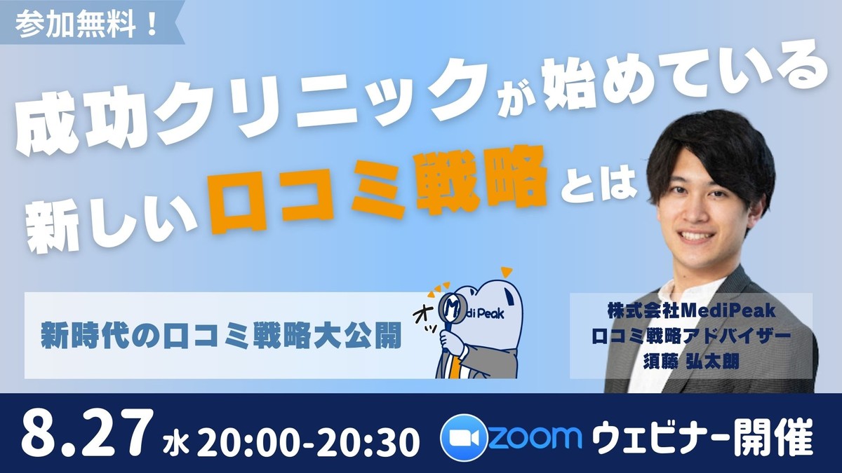 【ご好評につき第2回開催決定!】成功クリニックが実践する新しい口コミ戦略|Zoom開催|参加費無料