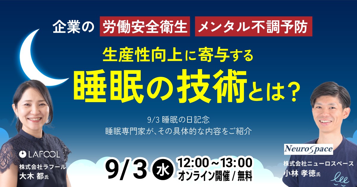 企業の労働安全衛生、メンタル不調予防、生産性向上に寄与する睡眠の技術とは?~9/3睡眠の日記念 睡眠専門家がその具体的な内容をご紹介~