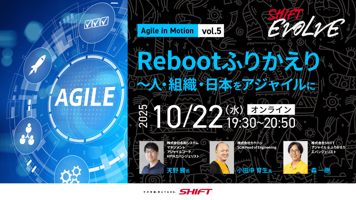 株式会社SHIFT ふりかえり&アジャイルエバンジェリストの森 一樹(びば)とともに、「Rebootふりかえり~人・組織・日本をアジャイルに」をテーマにしたパネルディスカッションを行います!