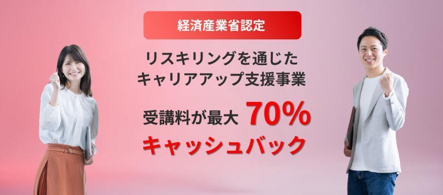 認定された7つのコースを受講し転職することで、受講料の最大70%のキャッシュバックを受けることができます!