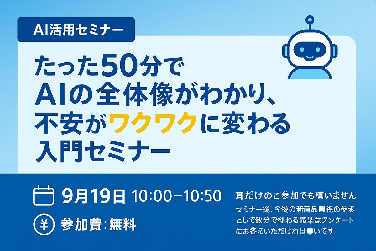 「たった50分でAIの全体像がわかり、不安がワクワクに変わる入門セミナー」