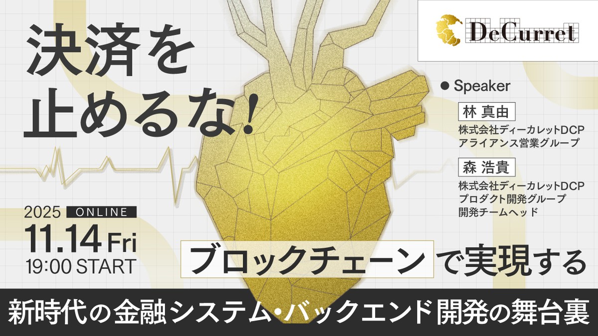 ディーカレットDCPは、レガシーな勘定系と新しい台帳をつなぎ、事業者・金融機関といったステークホルダー間で、ブロックチェーン技術を使った金融システムの現実解を形にする役割を担っています。 本イベントでは、その視点から“なぜ今、どこに、どの順で導入するか”を解説しつつ、それを実現する技術とノウハウをご紹介します。