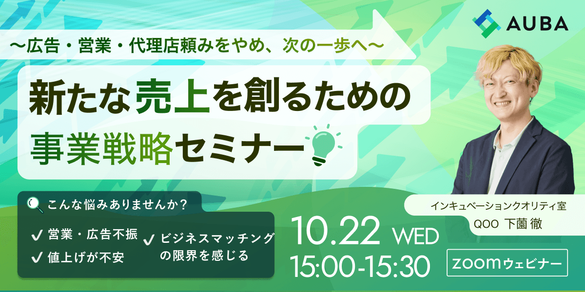 本セミナーは、まさにそのような「広告・営業・代理店頼み」からの脱却をし、自社主導で新たな売上を創り出す「次の一歩」を踏み出すヒントが詰まっています